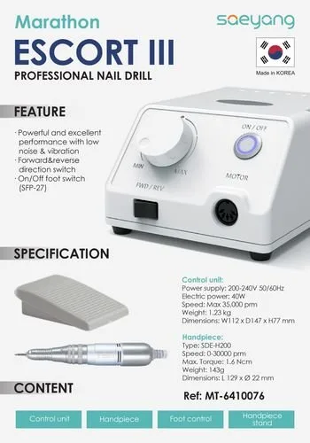 מכונת השיוף הוותיקה בשוק ה- MARATHON דגם Escort 3 החדשה היא מכונת שיוף מקצועית אמינה עמידה במיוחד חזקה ואיכותית ידית חדשה וקלה רק 156 גר ללא רעידות עד 35000 סיבובים בדקה .